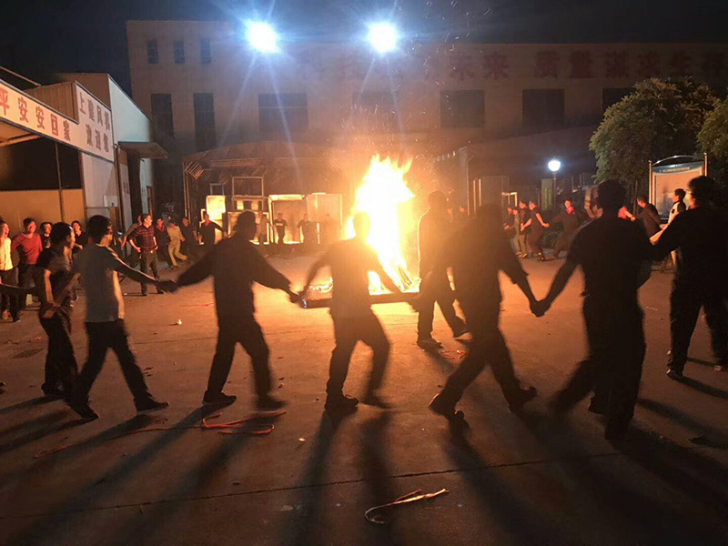 最讓人激動人心的篝火晚會隨著“皇后大道東、兔子舞”等活潑愉快的旋律拉開帷幕,濃烈而又跳躍的篝火在上建的土地上猛烈的燃燒著,隨風而舞的火苗竄上上建的天空,旺啊!燒啊!員工們個個向火堆投木柴,眾人拾柴火焰高。大家手拉著手,手搭著肩,圍成一圏盡情歡快的跳著兔子舞,此時沒有老板、沒有領導,大家是和諧共處的一家人,喜悅和興奮之情溢于言表。